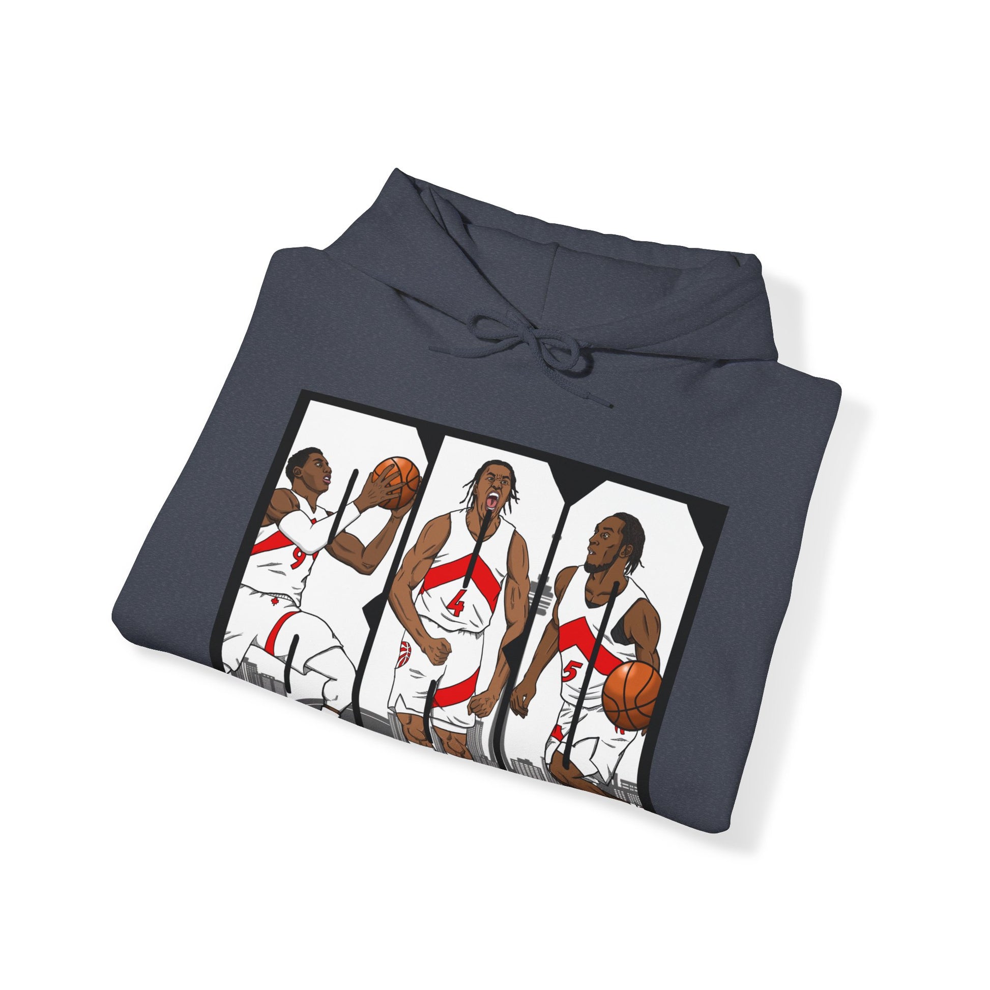 This unisex heavy blend hooded sweatshirt is relaxation itself. Made with a thick blend of cotton and polyester, it feels plush, soft and warm, a perfect choice for any cold day. In the front, the spacious kangaroo pocket adds daily practicality while the hood's drawstring is the same color as the base sweater for extra style points.